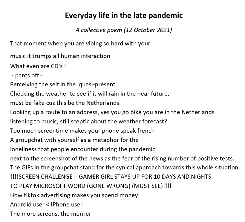 These days, I do have to call myself a teacher: that title (docent) goes with the employment contract. Strangely enough, for most of my years as a teacher, I felt far less comfortable doing it than I ever did painting. Only in very recent years have I felt comfortable enough to experiment. Teaching the introductory Explorations class on the Humanities Honours Programme in Utrecht has been a wonderful opportunity to do just that, as it is meant to allow students to find their own path through the discipline, and set their own learning goals. That framework means teaching and learning are a constant experiment.